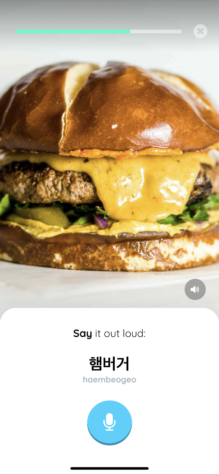 The application has 3 different types of lessons: situational conversation lessons, word lessons, and what they call sleep lessons which is a recording of conversations you can listen to, to improve your listening abilities.